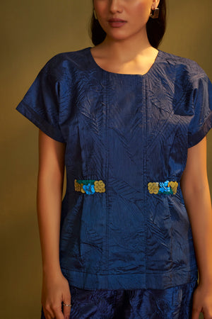 2 Fabric Composition: Crushed Viscose Colour: Blue Embroidery Details: